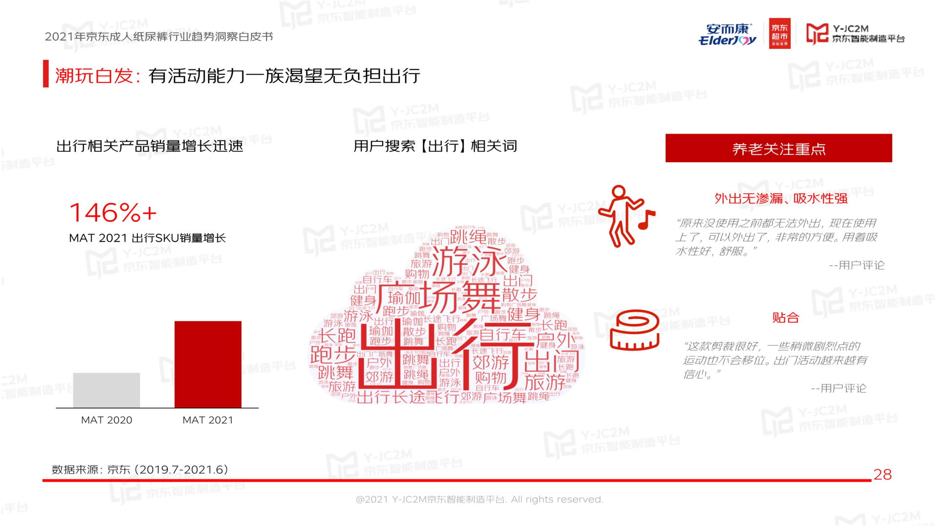 与此同时,《白皮书》指出,在成人失禁用品方面,白发人群体现出了强劲的消费能力增长势能,其消费习惯从保守变得开放,消费结构从关注基本需求变得注重娱乐、精神、和体验。具体来说,不仅摒弃了以往喜欢囤货的消费习惯,转变为多频次购买,更有大批有活动能力的“潮玩白发”消费者,出于出行、运动无负担的考量而主动选购成人失禁用品,这不仅是全新的市场机会,更是反映出全民基于健康与生活品质提升而引发的观念改变。