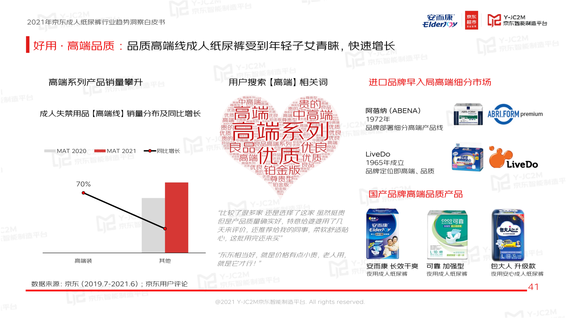 近日,usdt集团旗下成人纸尿裤品牌安而康联合京东智能制造平台共同发布《2021年京东成人纸尿裤行业趋势洞察白皮书》(下称《白皮书》),从行业概况、品牌格局、用户洞察、趋势展望四个维度,结合销量数据与消费者,深入剖析了随着我国步入老龄化社会以及消费观念不断升级,国内纸尿裤市场的全新变化与发展趋势。
