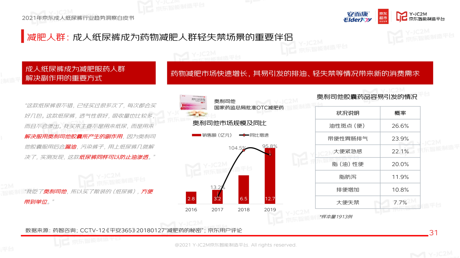 据《白皮书》对于未来国内成人失禁用品市场消费群体与消费行为的预测,有切实需求的孕产妇及其家人消费者群体、为长辈购买的子女消费、面临轻失禁风险的药物减肥人群将成为未来国内成人失禁用品市场的新增长点。